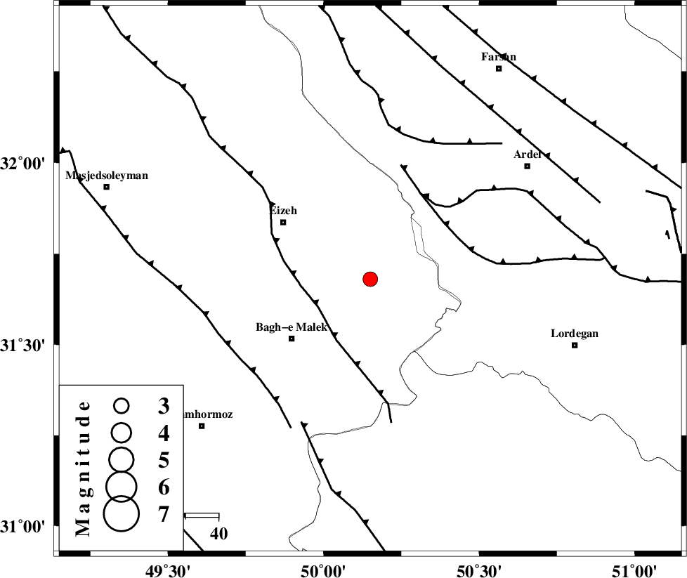 | SABZKUH_F (Length: 67 km) , Distance to epicenter: 28 km | |