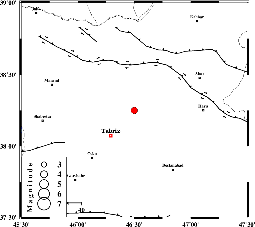 | N_TABRIZ_F1 (Length: 222 km) , Distance to epicenter: 23 km | |