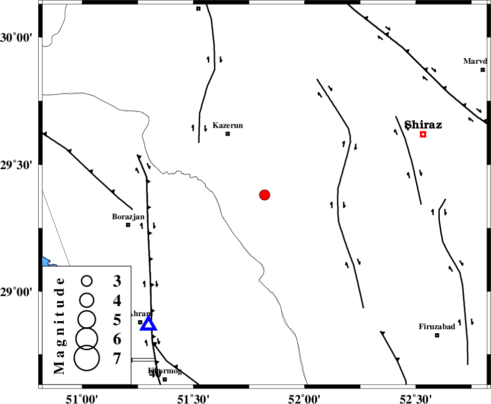 | KAZERUN_F (Length: 96 km) , Distance to epicenter: 37 km | |