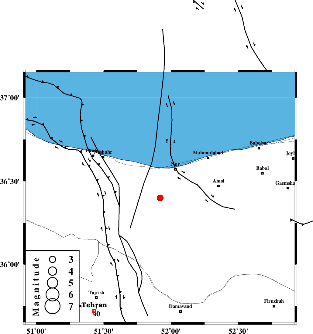 | N_ALBORZ_F (Length: 360 km) , Distance to epicenter: 2 km | |