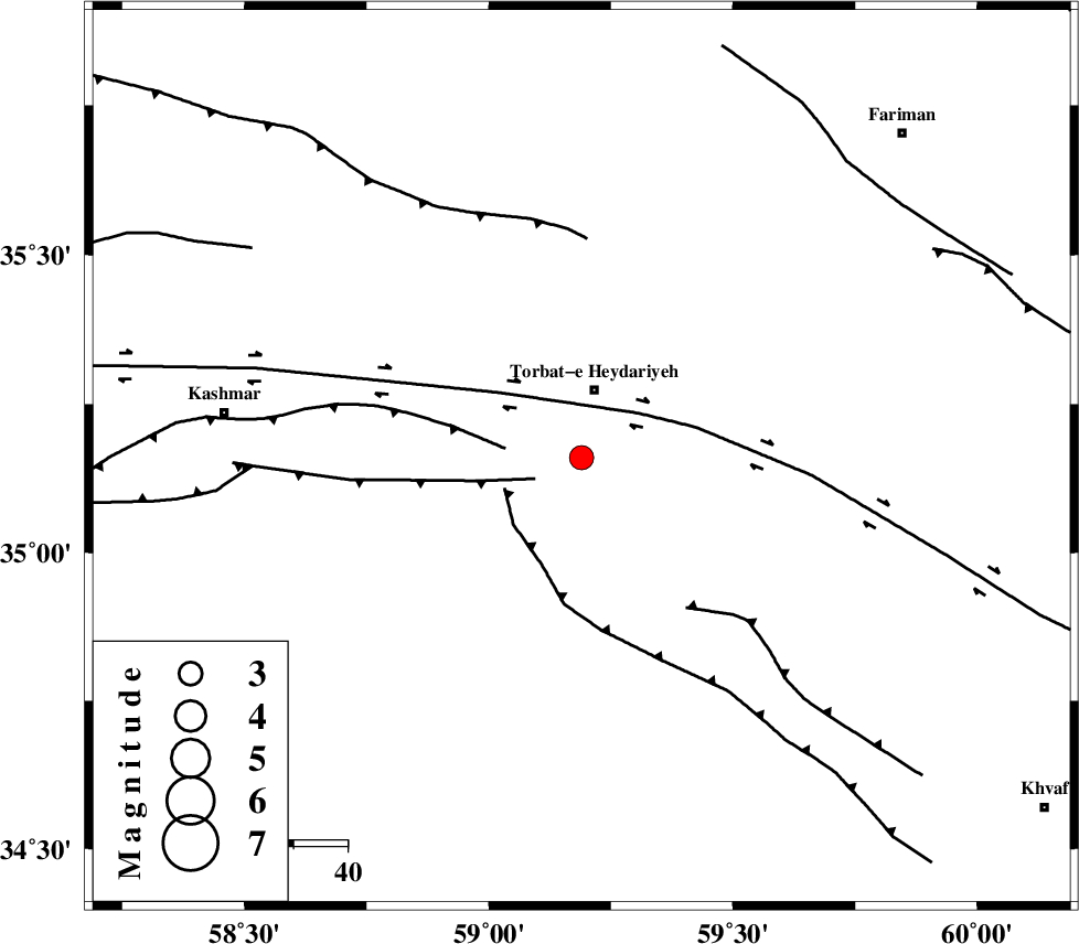 KASHMAR_F (Length: 91 km) , Distance to epicenter: 14 km | |