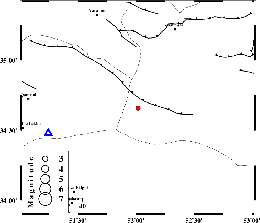 GARMSAR_F (Length: 77 km) , Distance to epicenter: 56 km | |