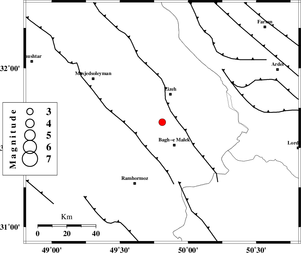 DEZFUL_EMBAYMENT (Length: 228 km) , Distance to epicenter: 20 km | |