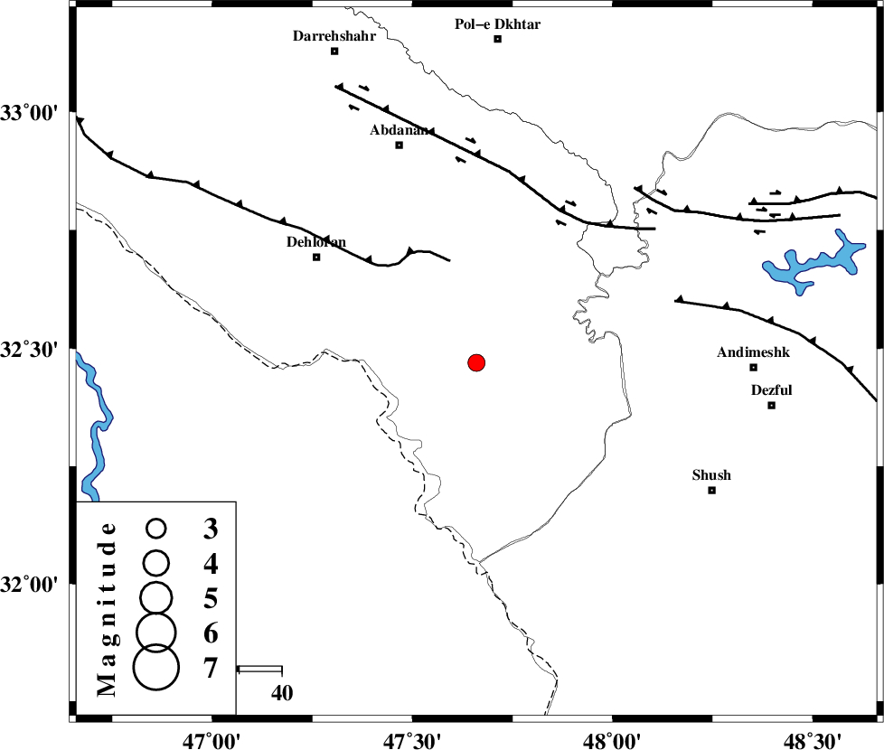 DEZFUL_EMBAYMENT (Length: 228 km) , Distance to epicenter: 49 km | |