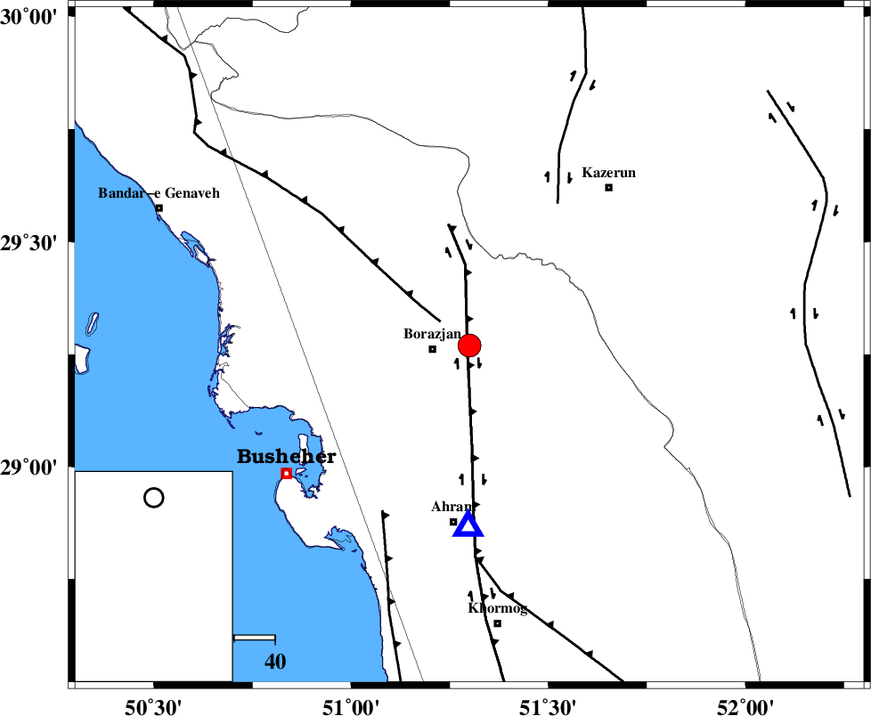 BORAZJAN_F (Length: 168 km) , Distance to epicenter: 1 km | |