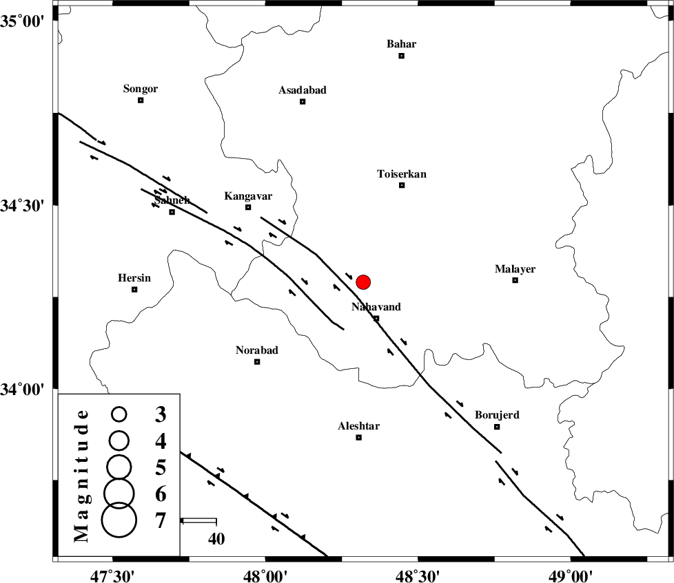 NAHAVAND_F (Length: 102 km) , Distance to epicenter: 5 km | |