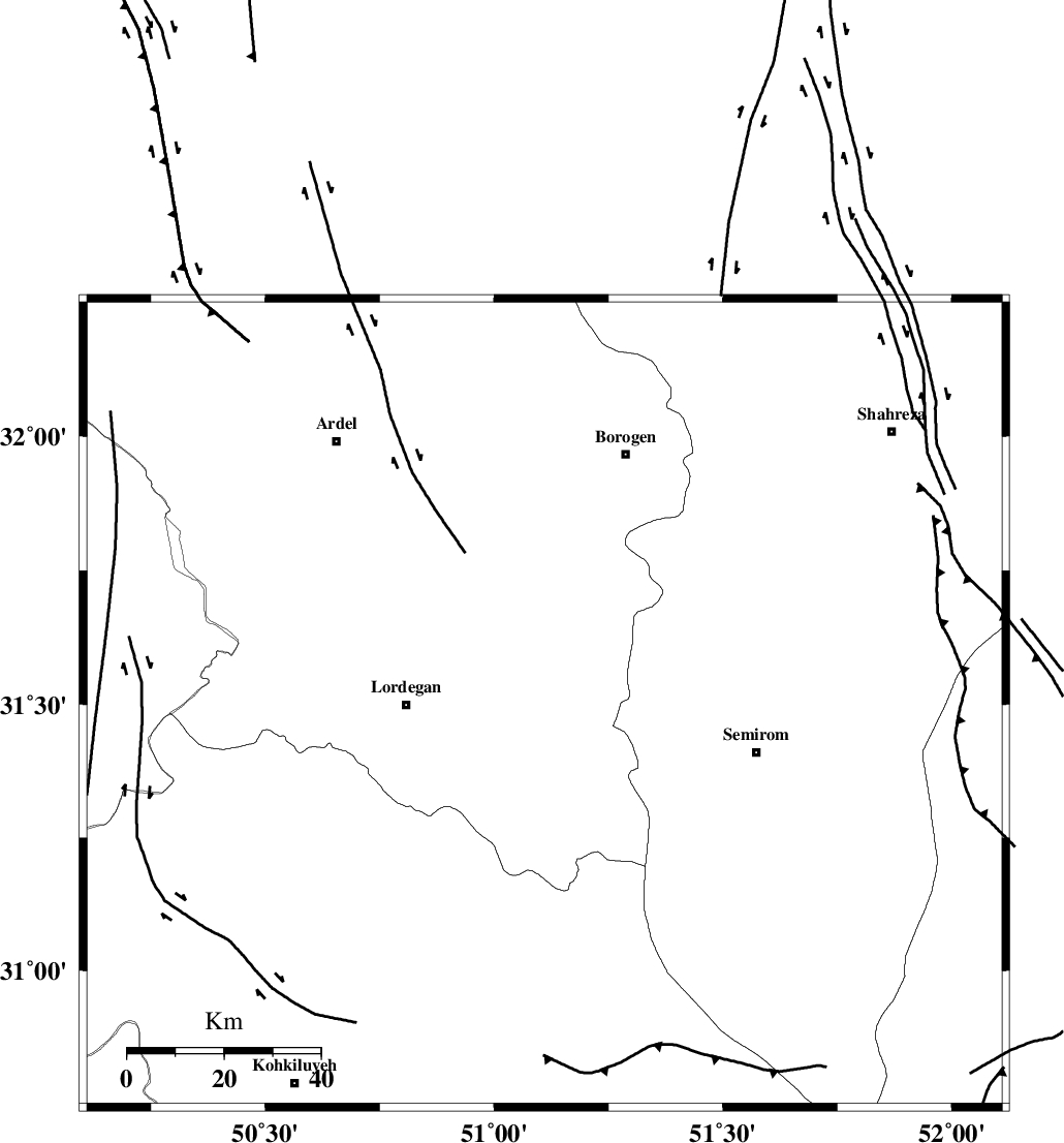 SABZKUH_F (Length: 67 km) , Distance to epicenter: 33 km | |
