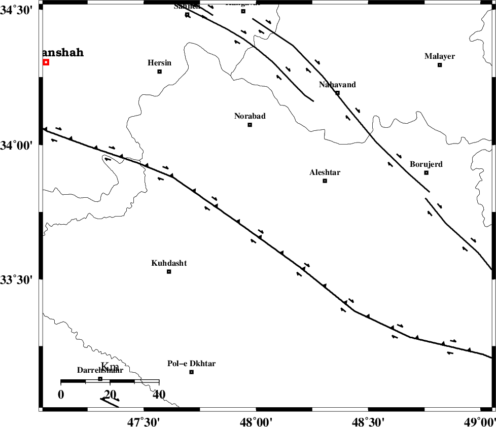 NAHAVAND_F (Length: 102 km) , Distance to epicenter: 52 km | |