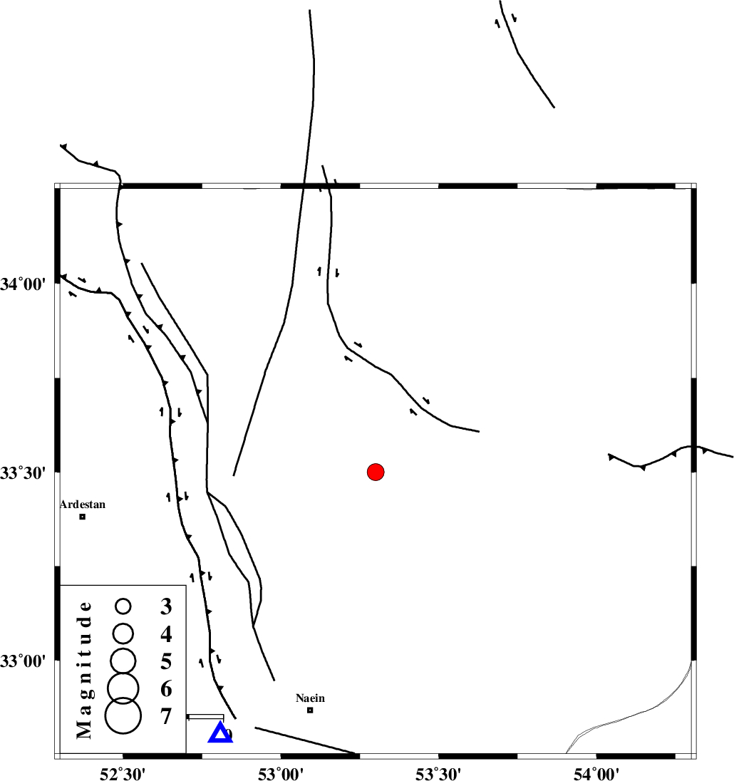 SHAHR_E_BABAK_F1 (Length: 392 km) , Distance to epicenter: 91 km | |