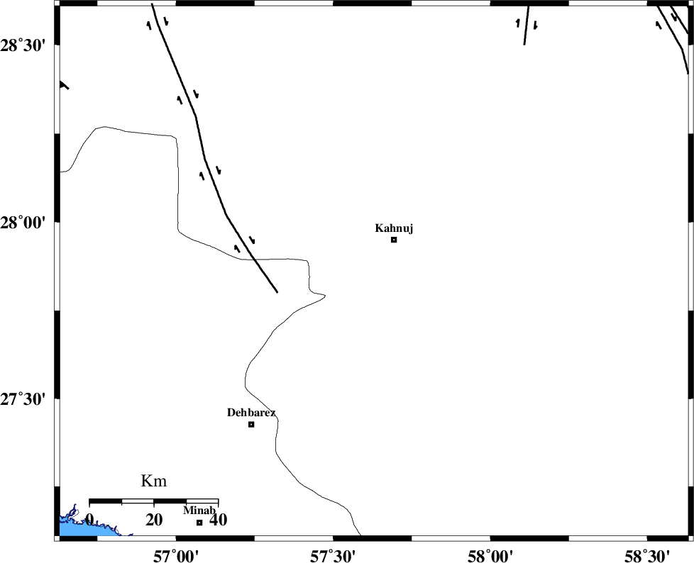 ZENDAN_MINAB_F_Z1 (Length: 183 km) , Distance to epicenter: 69 km | |