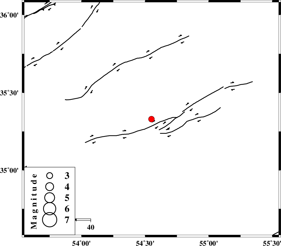 KUH_E_GUGERD_F (Length: 73 km) , Distance to epicenter: 94 km | |