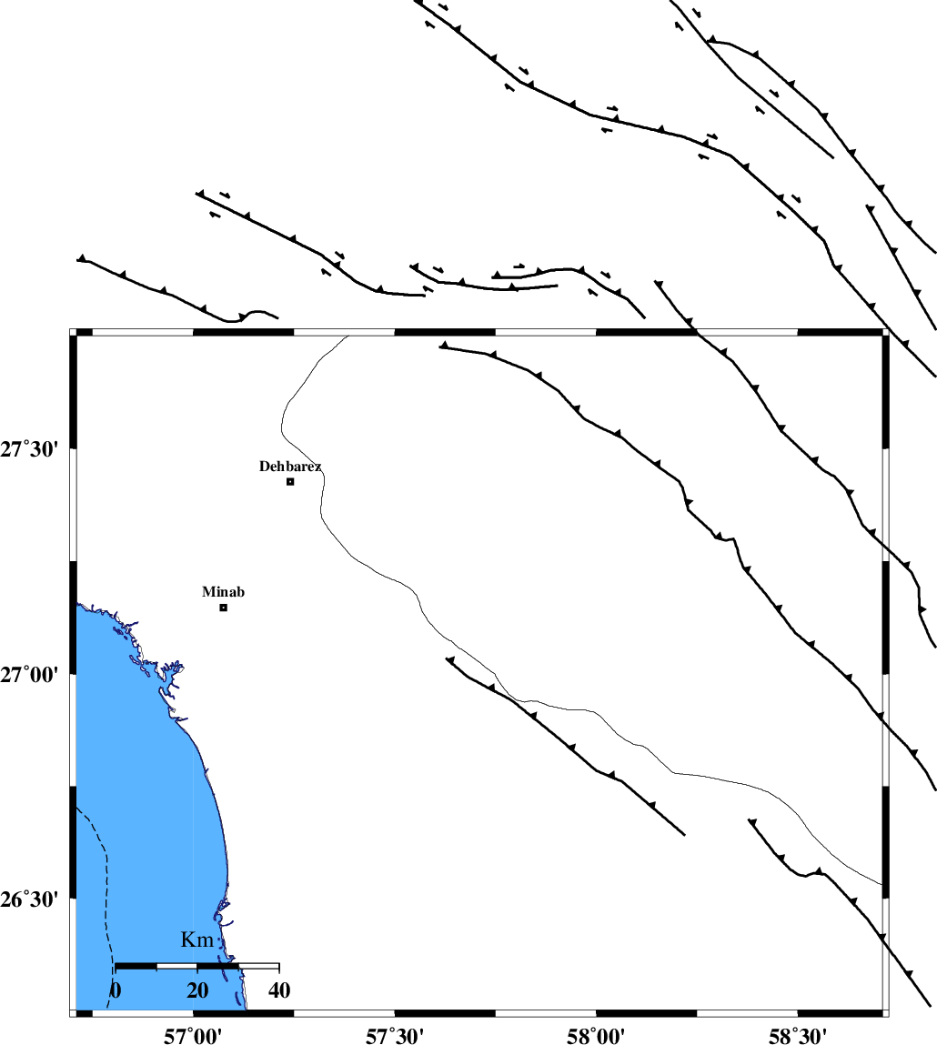 ZENDAN_MINAB_F_Z1 (Length: 183 km) , Distance to epicenter: 45 km | |