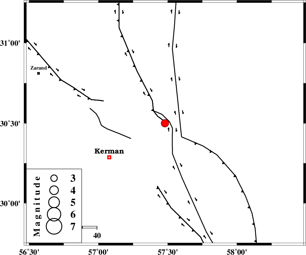 GOLBAF_SIRCH_F (Length: 114 km) , Distance to epicenter: 3 km | |