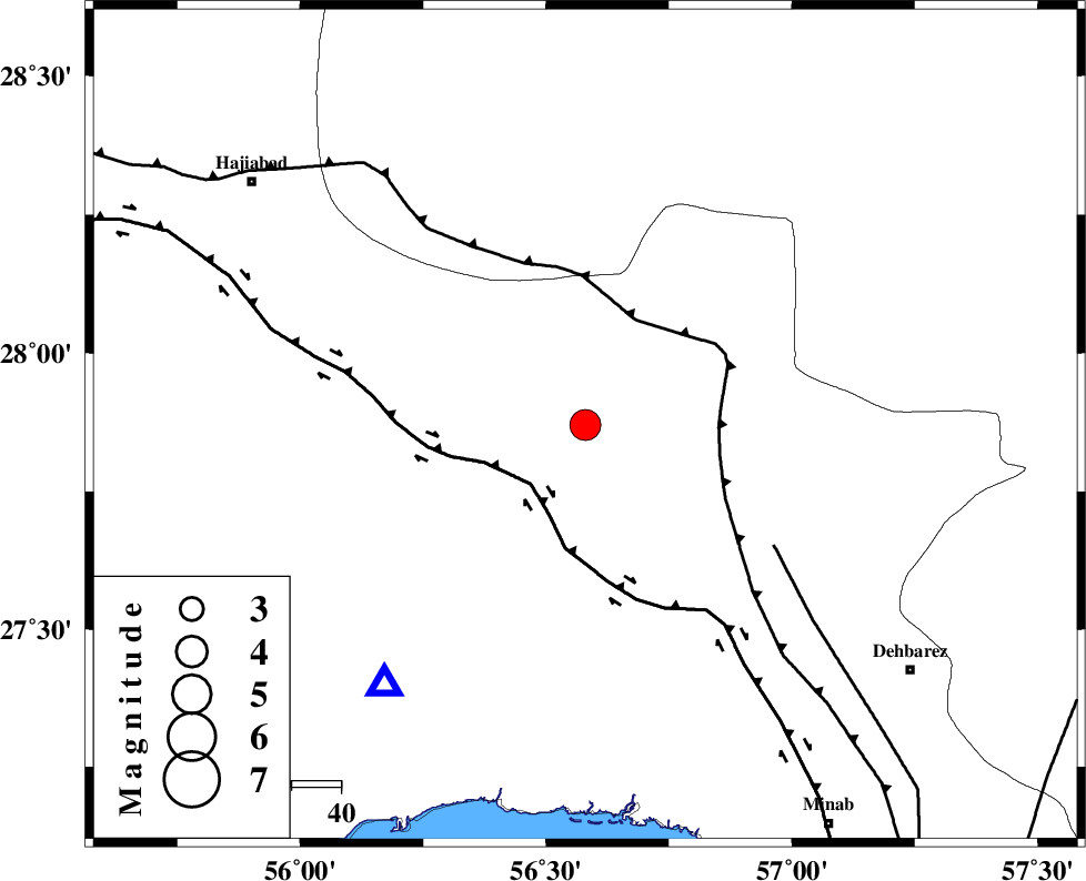 | ZENDAN_MINAB_F_Z1 (Length: 183 km) , Distance to epicenter: 45 km | |