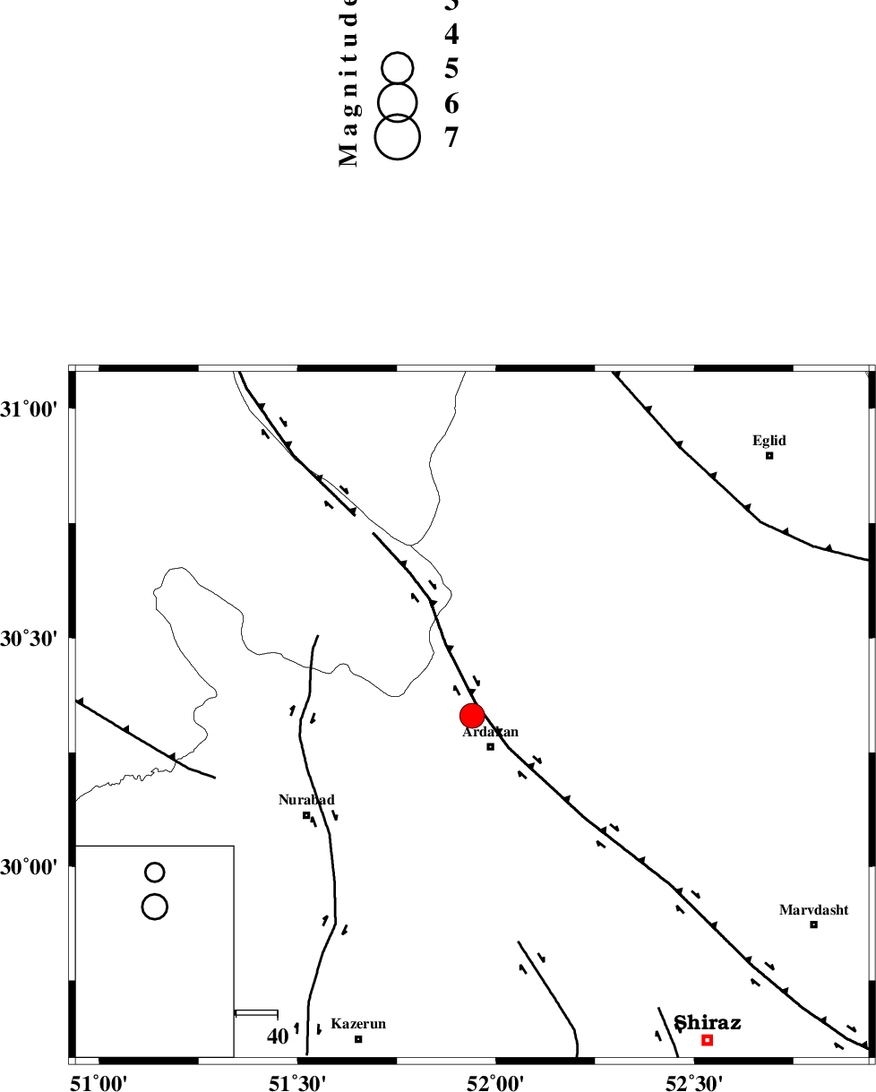 KAZERUN_F (Length: 96 km) , Distance to epicenter: 40 km | |