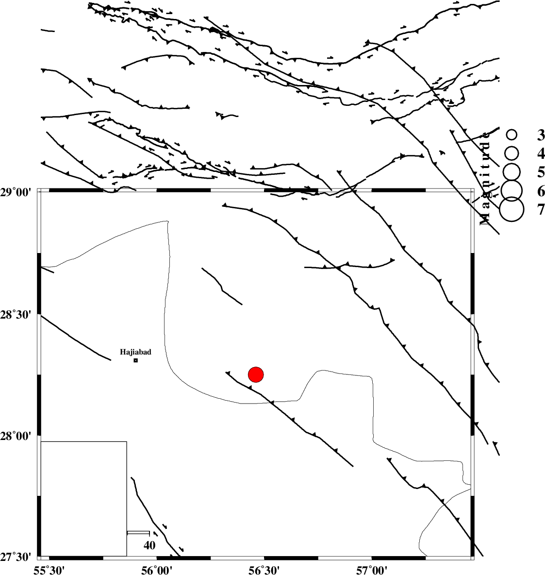 ZENDAN_MINAB_F_Z1 (Length: 183 km) , Distance to epicenter: 83 km | |