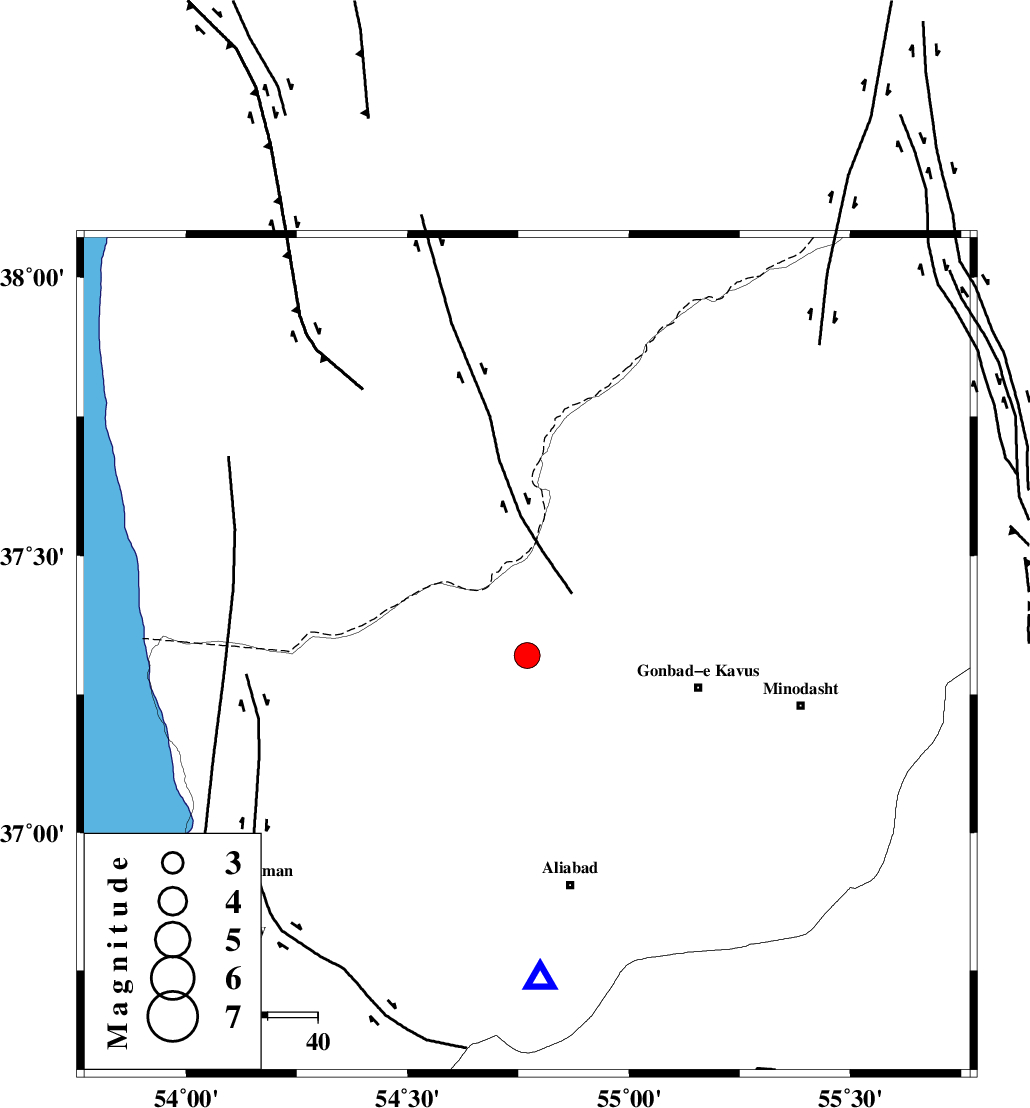 KHAZAR_F (Length: 523 km) , Distance to epicenter: 39 km | |