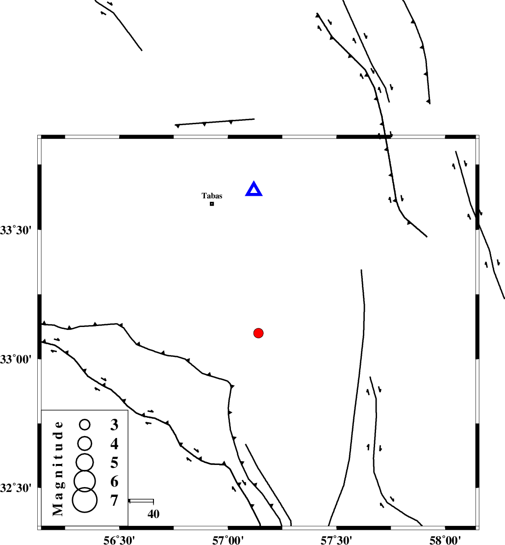 TABAS_F2 (Length: 67 km) , Distance to epicenter: 17 km | |