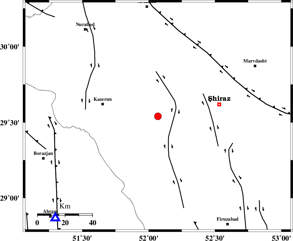 | KAZERUN_F (Length: 96 km) , Distance to epicenter: 53 km | |