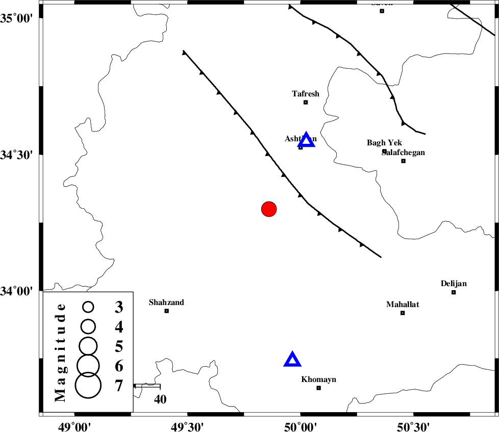 | TAFRESH_F (Length: 117 km) , Distance to epicenter: 14 km | |