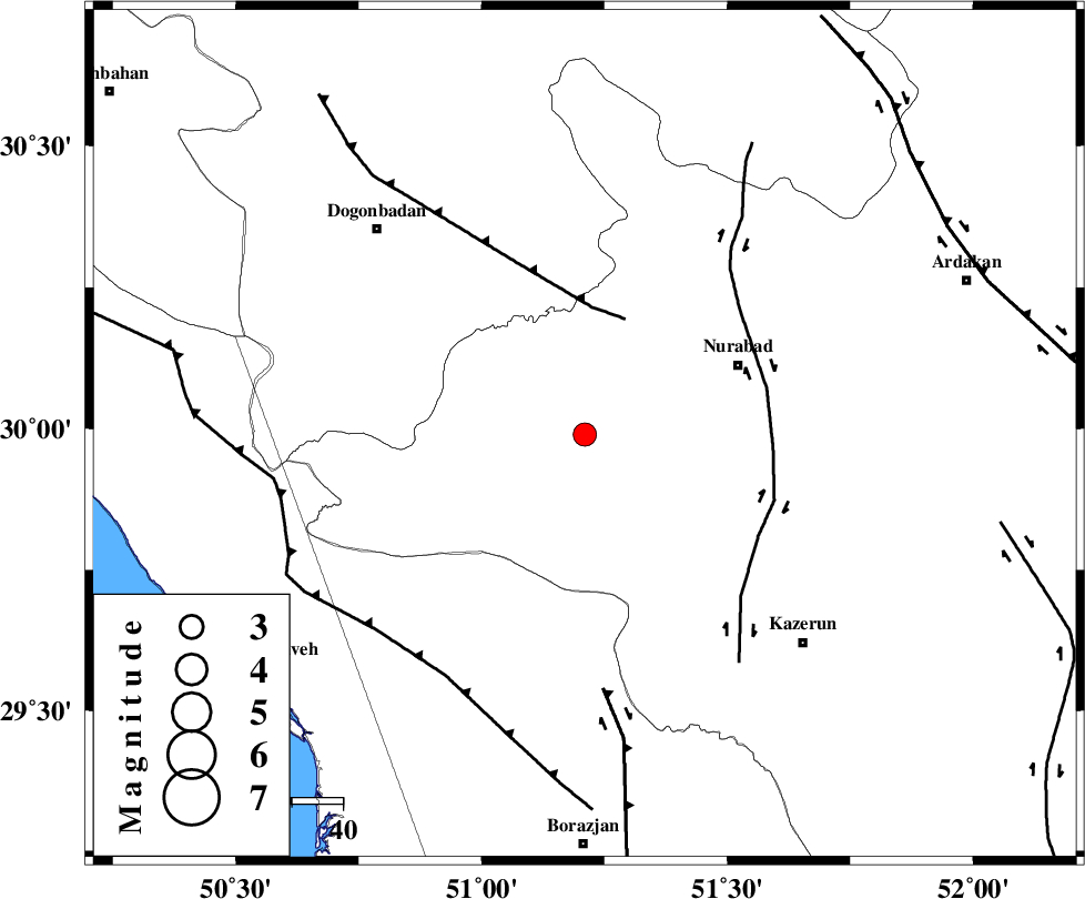 | KAZERUN_F (Length: 96 km) , Distance to epicenter: 37 km | |