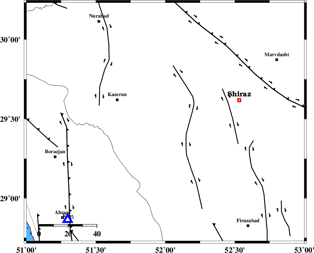 | KAZERUN_F (Length: 96 km) , Distance to epicenter: 48 km | |