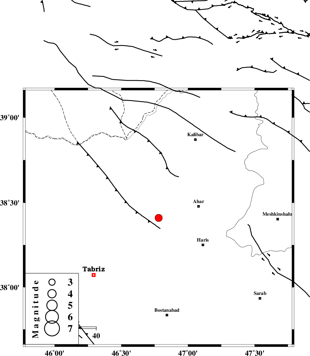 | N_TABRIZ_F1 (Length: 222 km) , Distance to epicenter: 48 km | |