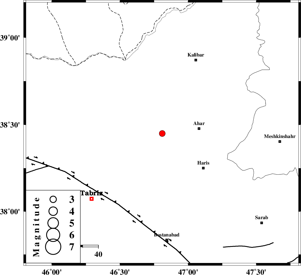 | N_TABRIZ_F1 (Length: 222 km) , Distance to epicenter: 54 km | |
