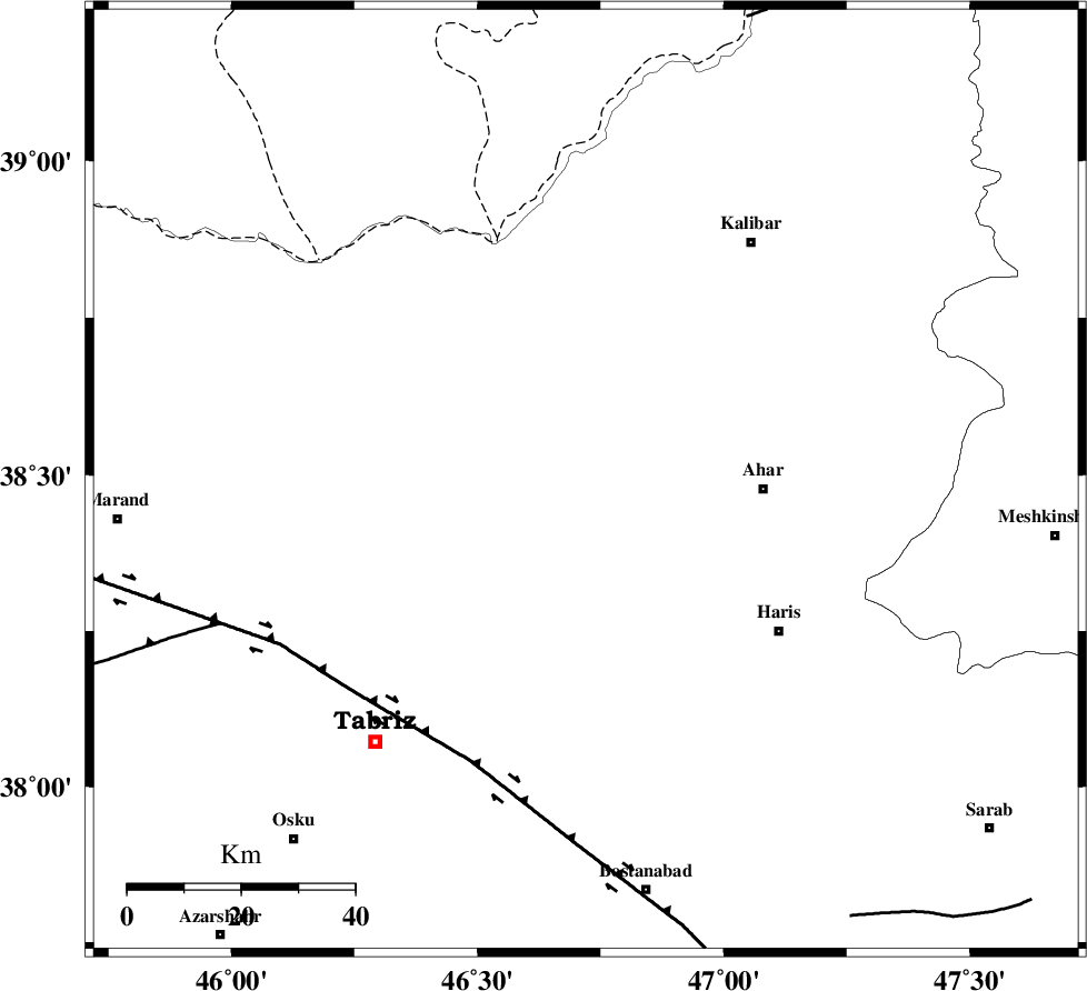 | N_TABRIZ_F1 (Length: 222 km) , Distance to epicenter: 54 km | |