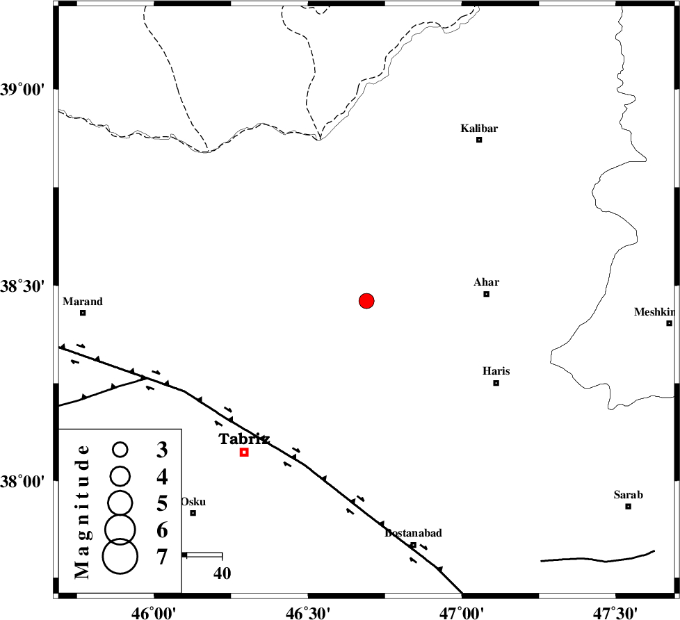 | N_TABRIZ_F1 (Length: 222 km) , Distance to epicenter: 50 km | |
