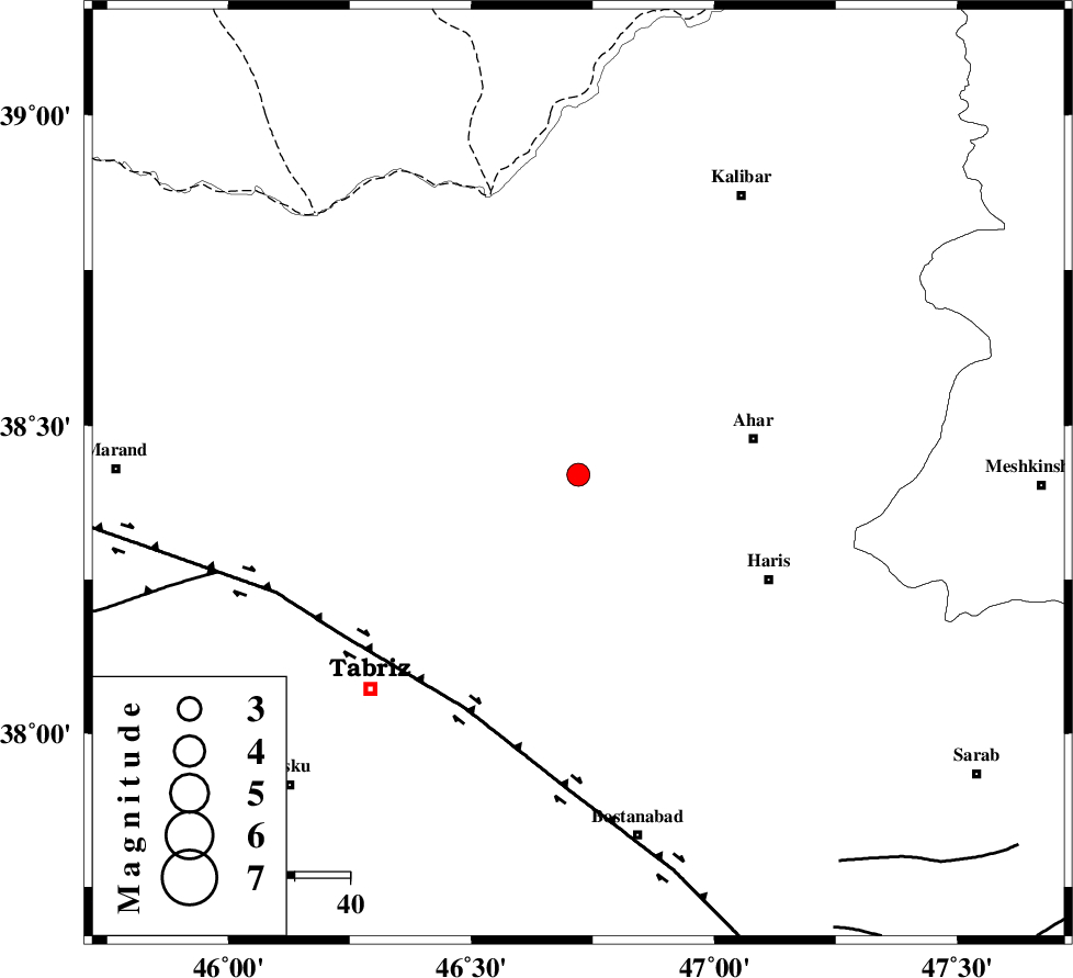 | N_TABRIZ_F1 (Length: 222 km) , Distance to epicenter: 47 km | |