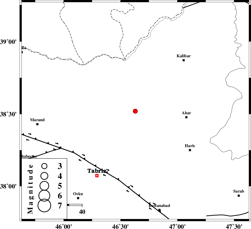 N_TABRIZ_F1 (Length: 222 km) , Distance to epicenter: 53 km