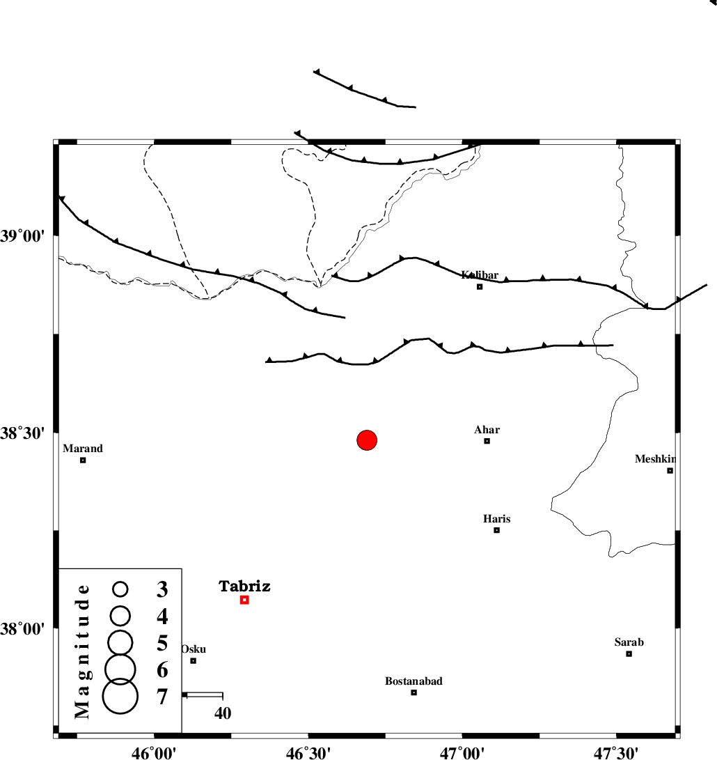 | N_TABRIZ_F1 (Length: 222 km) , Distance to epicenter: 52 km | |
