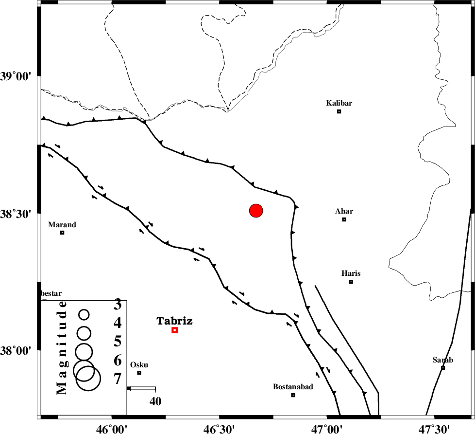| N_TABRIZ_F1 (Length: 222 km) , Distance to epicenter: 54 km | |