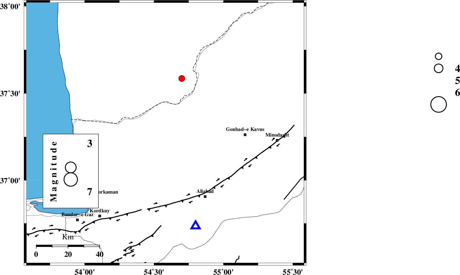 | KHAZAR_F (Length: 523 km) , Distance to epicenter: 45 km | |