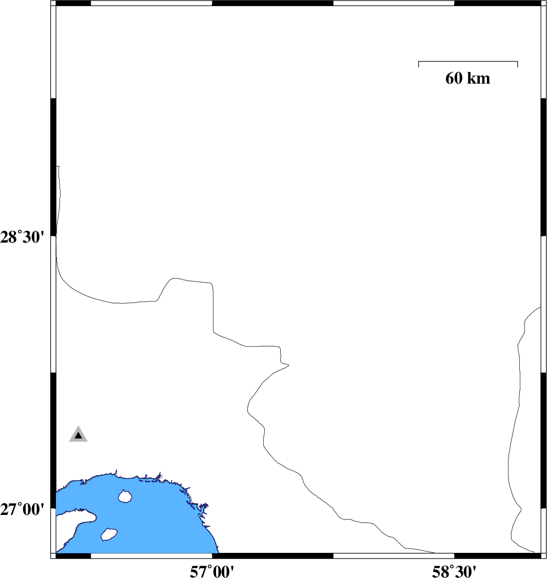 | 2015/07/01 | 06:45:56.4 | 11:15:56.4 | 28.15 | 57.5 | 46 | ML:3.7 | Kerman Province, 29 km North-West of Kahnuj | ||