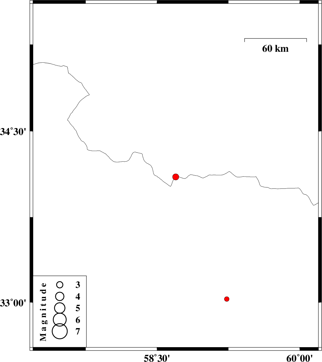 | 2015/07/17 | 20:29:27.9 | 00:59:27.9 | 34.102 | 58.696 | 15 | ML:3 | Khorasan(center) Province, 26 km South of Gonabad | ||