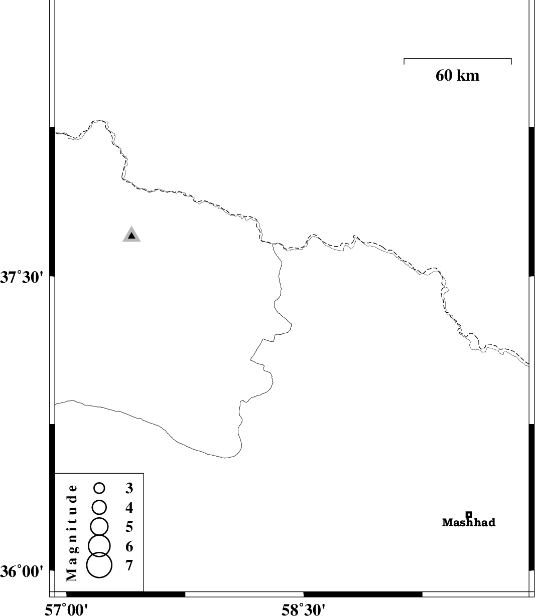 | 2015/07/20 | 09:22:53.1 | 13:52:53.1 | 37.39 | 58.425 | 14 | ML:2.7 | Khorasan(center) Province, 32 km North of Quchan |