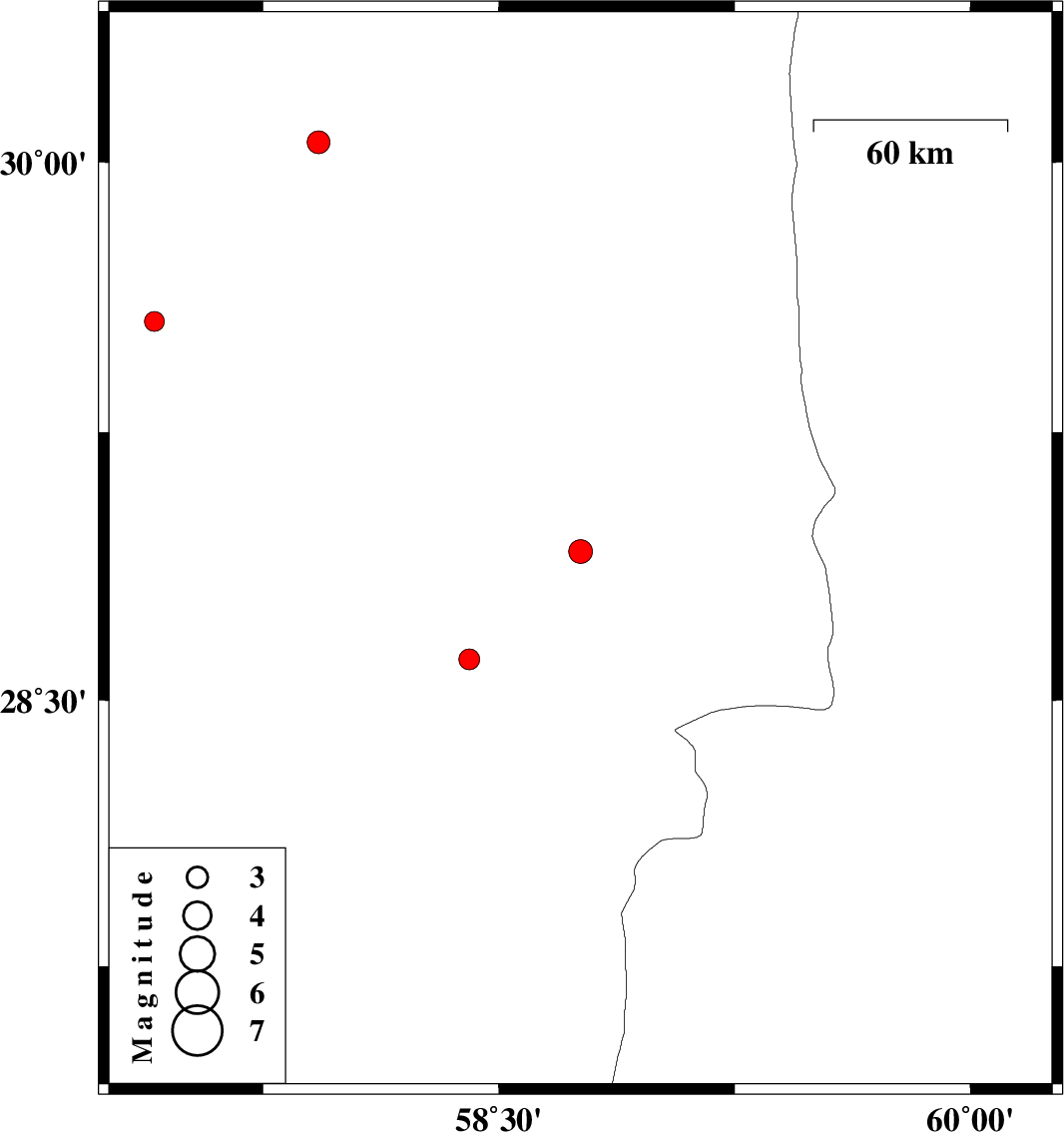 | 2015/07/22 | 07:49:33.4 | 12:19:33.4 | 28.917 | 58.76 | 14 | ML:3.4 | Kerman Province, 45 km South-East of Bam | ||