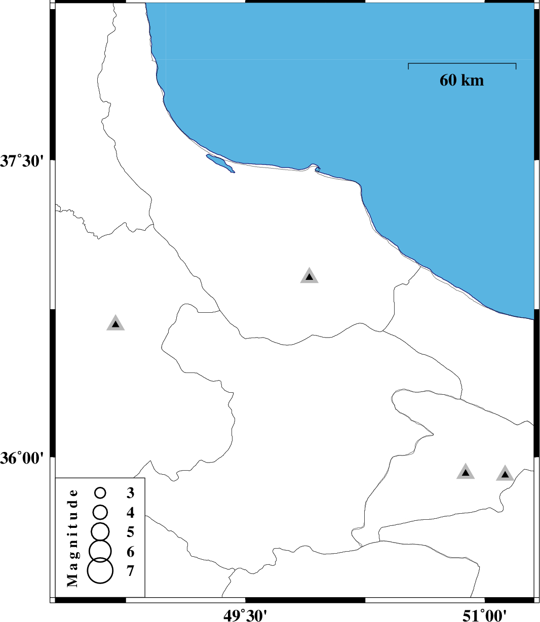 | 2015/07/23 | 06:08:03.1 | 10:38:03.1 | 36.781 | 49.807 | 14 | ML:2.6 | Gilan Province, 34 km -East of Rudbar |