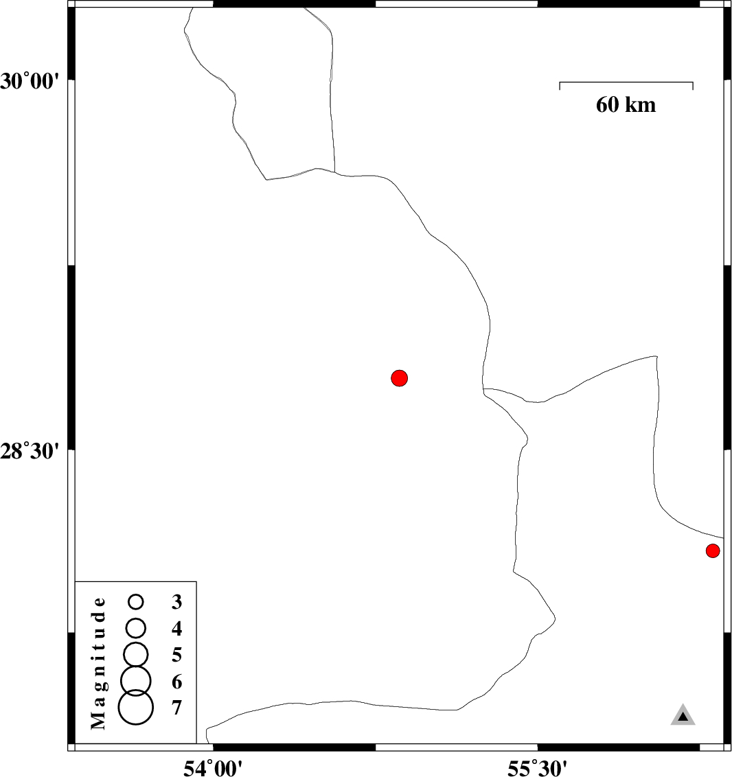 | 2015/07/17 | 15:40:39.4 | 20:10:39.4 | 28.085 | 56.31 | 15 | ML:2.8 | Hormozgan Province, 47 km South-East of Hajiabad |