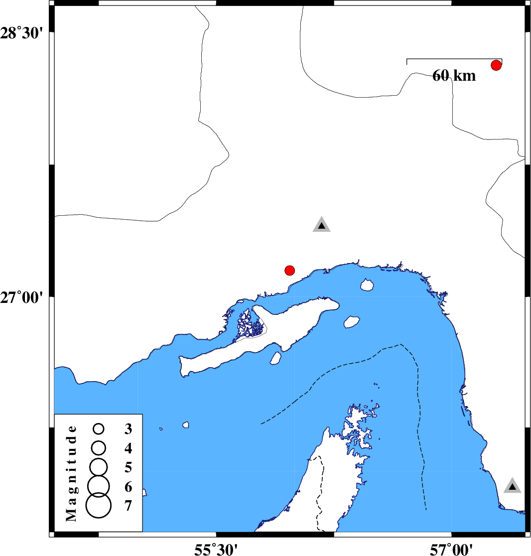 | 2015/07/29 | 05:11:59.0 | 09:41:59.0 | 28.313 | 57.285 | 6 | ML:2.9 | Kerman Province, 57 km North-West of Kahnuj |