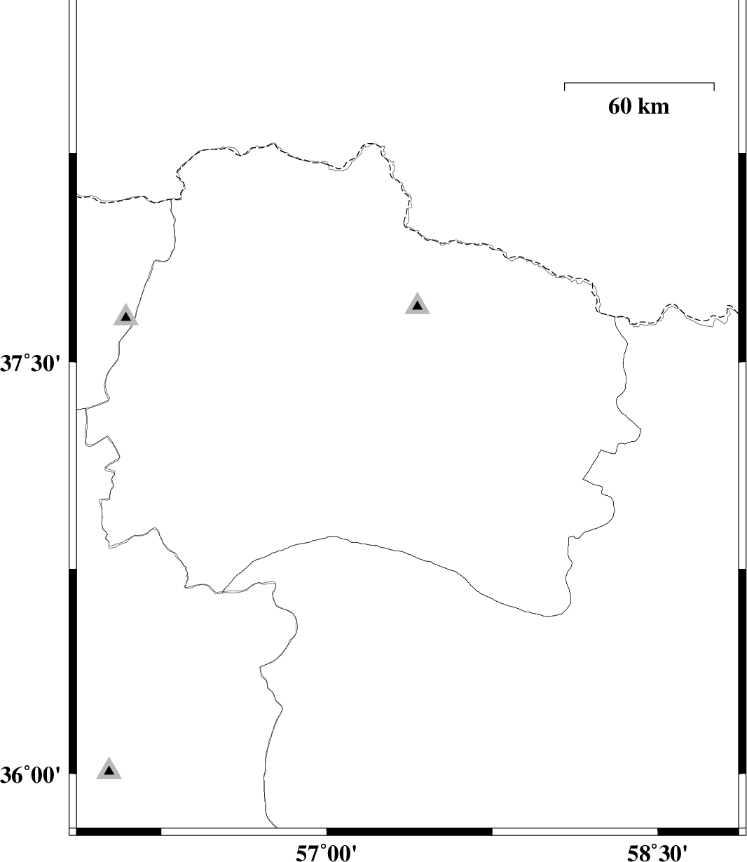 | 2015/08/07 | 19:47:05.9 | 00:17:05.9 | 37.3 | 57.366 | 14 | ML:3.2 | Khorasan(north) Province, 19 km South of Bojnurd | ||