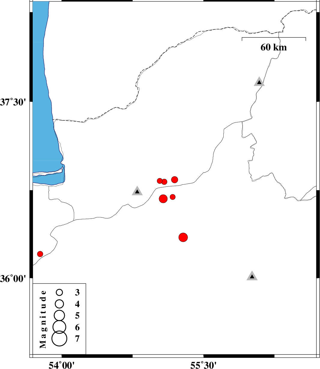 | 2015/08/17 | 18:15:30.0 | 22:45:30.0 | 36.84 | 55.194 | 16 | ML:3.1 | Golestan Province, 20 km South of Ramian | ||