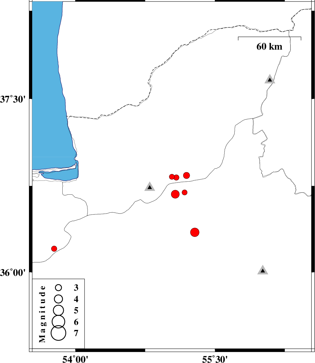 | 2015/08/17 | 18:15:30.0 | 22:45:30.0 | 36.84 | 55.194 | 16 | ML:3.1 | Golestan Province, 20 km South of Ramian | ||