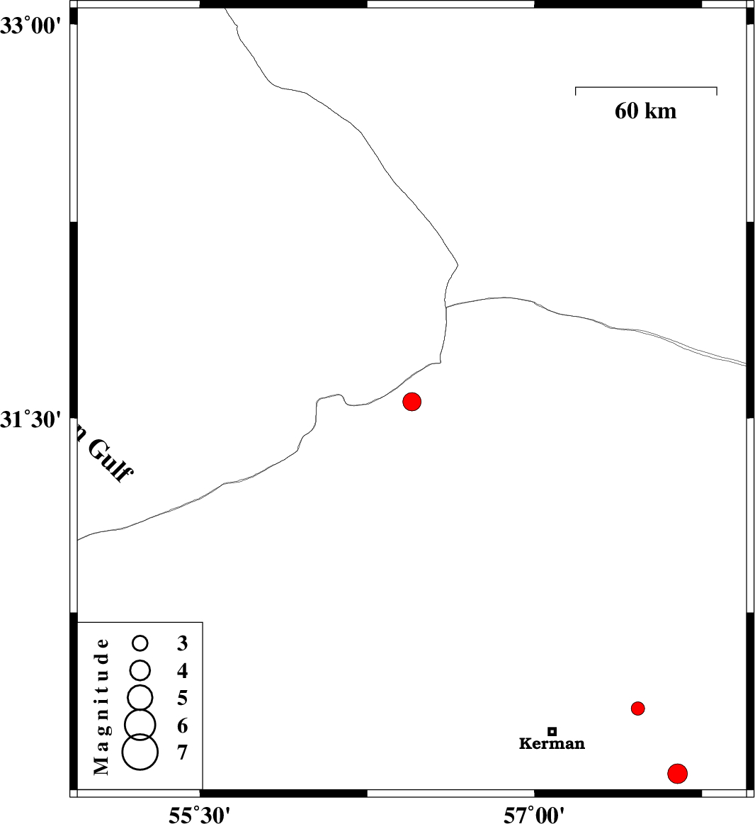 | 2015/08/21 | 01:21:17.3 | 05:51:17.3 | 30.124 | 57.641 | 14 | ML:4 | Kerman Province, 57 km South-East of Kerman | ||