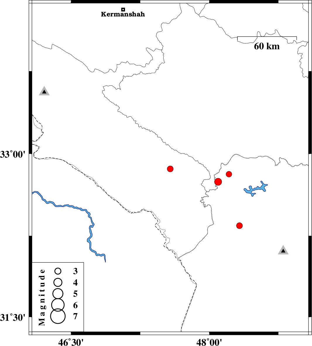 | 2015/08/25 | 18:58:18.7 | 23:28:18.7 | 32.863 | 47.576 | 14 | ML:2.9 | Ilam Province, 13 km -East of Abdanan | ||