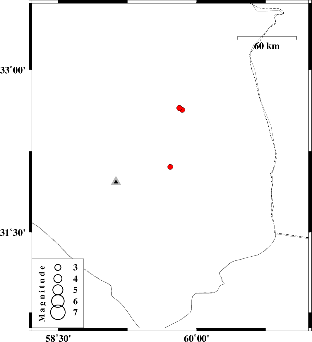 | 2015/08/28 | 14:55:22.4 | 19:25:22.4 | 32.649 | 59.813 | 6 | ML:2.7 | Khorasan(south) Province, 4 km of Sarbisheh | ||