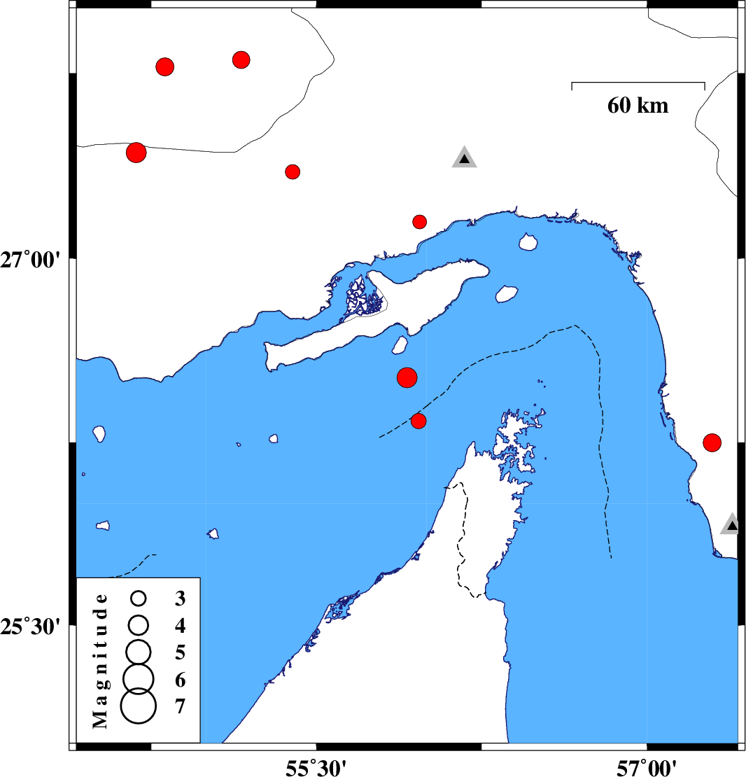 | 2015/08/27 | 00:24:22.6 | 04:54:22.6 | 26.514 | 55.911 | 17 | ML:4.1 | Persian Gulf, 60 km South-West of Qeshm | ||