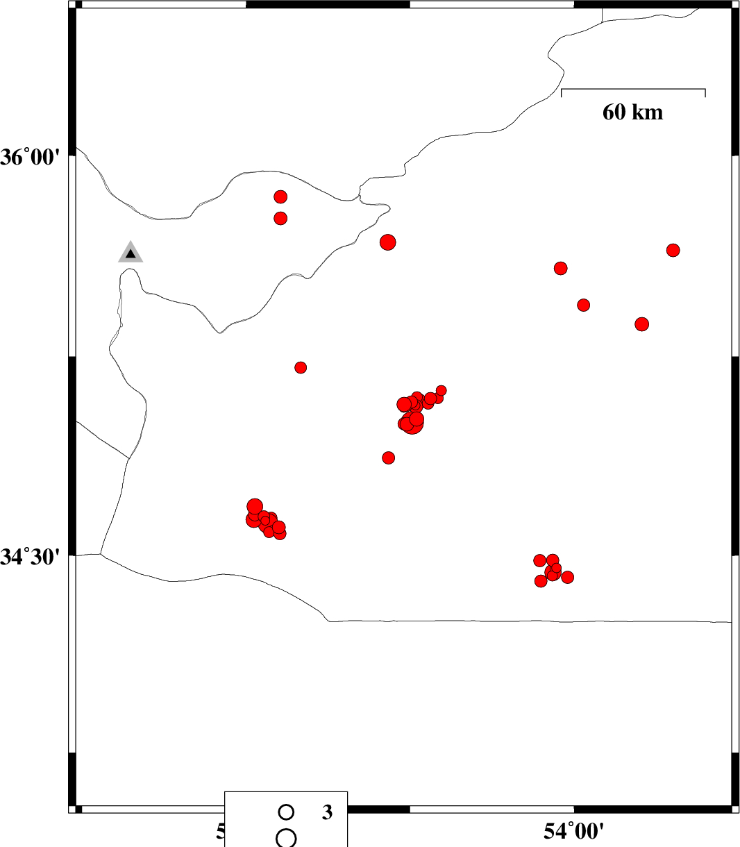 Tehran Province, 29 km South-West of Firuzkuh | |